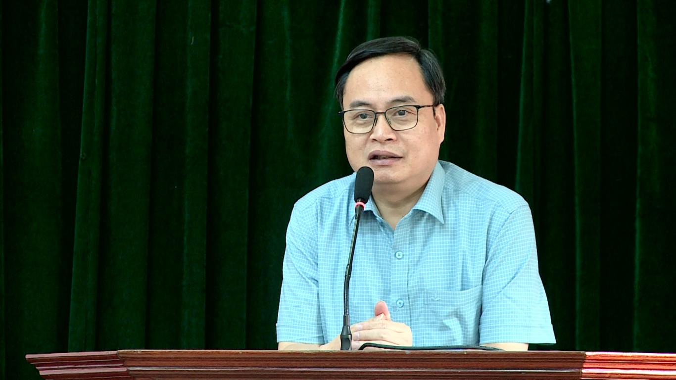 Trưởng Ban Tuyên giáo và Dân vận Thành ủy, Giám đốc Trung tâm Chính trị thành phố Nguyễn Đức Hiện phát biểu tại Lễ bế giảng